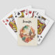 Jogando cartas com uma bela ilustração pintada. Cactos verdes e montanhas marrons com flores laranja do deserto. Cênico bonito design a sudoeste.
