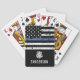 Este design apresenta uma bandeira da polícia com listras pretas e brancas, e uma fina faixa azul de linha também. O texto "A Legenda está se aposentando" fica acima do nome personalizável do polícia oficial aposentado, xerife, capitão ou chefe. Celebre este marco em estilo!