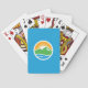 Jogando cartas com um design com a bandeira de Provo, Utah. Uma bandeira azul com o logotipo da Cidade do Provo no centro. O logótipo representa o lago de Utah e os picos de montanha próximos com o sol ascensão ao fundo