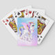 Jogando cartas com a imagem de um unicórnio com grandes olhos azuis, asas cor-de-rosa e um arco-íris e cauda. Kawaii fofo.