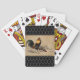 Um belo galo preto com penas de ouro fluindo leva-o sobre a galinha. Ele sabe que é o orgulho da caminhada no seu quintal. Amantes de aves amarão este baralho de cartas de jogar incomuns.
