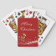 Bonita Rudolf, a rena ruidosa vermelha sobre um fundo vermelho festivo com um embelezamento de fundo nevado. Design de Natal bonito e divertido para as suas cartas de jogar.
