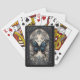 Uma borboleta azul escura com sotaques brancos repousa em um quadro Gótico ornamentado com pontos azuis. Vintage, vitoriana na aparência, e muito bonita. Perfeito para quem aprecia a estética do Gótico.