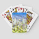 Estas cartas de jogar apresentam uma imagem com duas borboletas brancas em flores amarelas num prado azul.