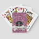 Este é um adorável conjunto de cartas de jogar para a menina feminina que ama brilho e brilho. Estilo de brilho fino com padrão de fundo em uma bonito sombra de cor-de-rosa, acentuado por um gráfico de fita prateada amarrado em um arco escuro e uma área de etiqueta circular preto e "prateado" com dupla anotação que você pode personalizar com seu nome e nome iniciais. Observe que este é um item impresso plano, suas placas não terão nenhum tecido, camadas, brilho ou outros materiais aplicados e não refletirão luz ou brilho como brilho real.