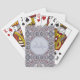 Ornate burgundy and grey kaleidoscopic pattern on personalized playing cards.