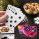 Estas cartas de jogar têm um cachorro preto e rosa pintado nelas.