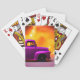 Estas cartas de jogar têm um caminhão roxo.