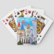 Os cartões clássicos de jogar exibindo uma vista das coloridas espirais iluminadas e a entrada do castelo medieval no Hotel Excalibur, ao anoitecer, feitos como uma pintura digital de aquarela O texto vermelho "Las Vegas" e é totalmente personalizável.