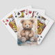 Jogando cartas com um ursinho de pelúcia fofo e fofo rodeado de folhagem macia e aquosa que dá uma sensação suave e caprichosa. Tons arrogantes e pinceladas delicadas melhoram a expressão carinhosa do urso.