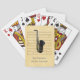 Este baralho apresenta um saxofone com terminação preta e chaves de ouro sobre um fundo de velhas músicas manuscritas vintage.