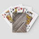 Este baralho de cartas apresenta uma interpretação artística de um velho celeiro rústico com madeira castanha, preta, cinza e laranja. A composição formada pelas linhas e grãos dos conselhos cria um interessante padrão abstrato.