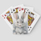 Jogar cartas de uma cinza fofa e fofinha coelho com orelhas grandes e uma expressão adorável é cercada por delicadas flores brancas. As cores macia e pastel criam uma atmosfera suave e caprichosa.