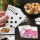 Lindos aglomerados de hidrangas púrpura e rosa. Na flor rosa há uma borboleta delicada. Este baralho pode ser personalizado.