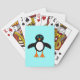 Este incrível baralho de jogo apresenta um personagem pinguim bonitinho com uma barriga branca, grandes olhos azuis com pupilas pretas e pés cor de laranja e bico. Esta pequena ave de inverno encantadora encanta crianças e adultos. O pinguim se senta sobre um fundo azul pálido e gelado para lembrá-lo de sua casa ártica infantil.