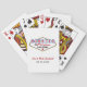 Esse costume único e divertido "Casado em Las Vegas Fabuloso", que faz o favor de jogar cartas, apresenta um monograma dos nomes da noiva e do noivo e datas de casamento e um fundo branco. Cores de design preto, branco, vermelho, azul, amarelo e cinza.