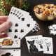 Esta design apresenta uma gata negra vestida de colar de pérolas e um gato macho branco vestida de gravata pontiaguda.