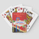Cartas de baralho personalizadas de Las Vegas fazem um souvenir divertido para os convidados no seu casamento em Las Vegas ou festa de solteiro(a) - preto e dourado em negrito e fundo vermelho com o icônico letreiro de boas-vindas de Las Vegas e seus nomes no modelo de texto personalizado