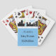 Este design apresenta um fundo azul e branco com uma silhueta preta de paisagem urbana. Há uma bonito esperançosa mãe andando pela rua segurando um guarda-chuva azul. Leituras de texto exclusivas: "É um menino". há uma coroa azul sobre o "b" no menino. Este baralho de cartas de jogar Bicicleta Azul é um presente exclusivo para um chá de fraldas ou compra-os para ajudá-lo a jogar jogos de chá. Personalize o texto na parte frontal dessas placas ou remova o campo de texto, se preferir. Também temos uma versão rosa para a menina e uma versão neutra.
