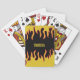 Crie um baralho personalizado para o seu jogador favorito. Estas cartas de jogar apresentam ilustrações das chamas em amarelo e vermelho contra um fundo preto com um nome ou outro texto em letras em negrito amarelo.