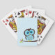 As cartas de jogar personalizadas apresentam uma ilustração de vetor doce de uma coruja empoleirada em uma ramificação de árvore em um plano de fundo de padrão bolinhas.