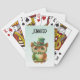 Jogando cartas com uma maravilhosa ilustração caprichosa. Uma grande coruja marrom vestindo um chapéu verde rico e gravata arco.