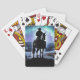Aurora Borealis or Northern Lights silhouette this cowboy and horse. Cool colors and a great country western card deck.