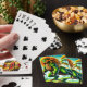 Estas cartas de jogar têm uma criatura verde sobre elas.