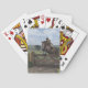 Essas cartas de jogar apresentam um trabalho de arte digital original de um cavalo e um cavaleiro pulando em um portão de fazenda, criado em Vue pelo artista Jayne Wilson.