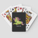 Jogando cartas com uma imagem de um unicórnio estilo Frankenstein. Cor roxa e verde. Muito fofo.