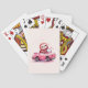 Playing cards with an adorable illustration. A happy looking sloth sitting in a sporty pink convertible. Waving as he drives by. Hearts floating upwards.