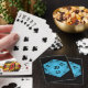 Um design que caracteriza um dado tomado partido do azul 20 com um fundo preto em cartões de jogo.
