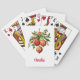 Tocando cartas com uma ilustração de estilo vintage. Três bolhas de Natal vermelhas cercadas por sagrado verde e bagas. Na moda retro design.