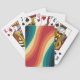 Ilustração geométrica de ondas retrorreflectoras multicoloridas com faixas de onda laranja, vermelha, bege, azul e turquesa em fundo azul escuro