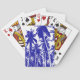 Palmeiras tropicais com efeito gráfico azul e branco.