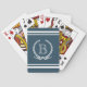 Design monograma com coroa de louros e decoração de listras em fundo azul