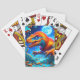 Estas cartas de jogar têm um dinossauro fotografado nelas.
