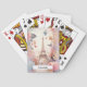 Playing cards with a stylized Eiffel tower image surrounded by pretty butterflies and delicate garden flowers.