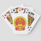O emblema nacional da República das Pessoas da China contém em círculo vermelho uma representação da Porta de Tiananmen, porta de entrada da Cidade Proibida, onde Mao declarou a fundação da República das Pessoas da China (PRC) em 1949. Acima dessa representação estão as cinco estrelas encontradas na bandeira nacional. A maior estrela representa o Partido Comunista da China, enquanto as quatro estrelas menores representam as quatro classes sociais definidas no Maoismo. A borda externa do círculo vermelho mostra as ovelhas de trigo e as vassouras internas de arroz, que, juntas, representam trabalhadores agrícolas. No centro da parte inferior da fronteira está uma roda-gigante que representa trabalhadores industriais.