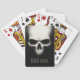 Tocando cartas com um crânio branco e assustador sobre um fundo preto com seu texto personalizado em uma cinza escura, ornamentado.