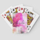 Design de cartas de jogar personalizadas modernas e modernas, apresentando um fundo cor-de-rosa abstrato com estrelas e com seu nome escrito em um roteiro moderno. O texto é totalmente personalizável.