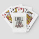 Um esqueleto tocando guitarra elétrica com as palavras que vou agitar você. Esta design parece realmente eficaz nessas Cartas de Jogar