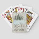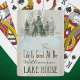 A vida é excelente na citação divertida de verão do lago. Madeira branca como fundo com design de água de árvores, lago e barco. Monograma com seu nome familiar. Maneira perfeita de jogar pôquer, ir pescar ou outros jogos de cartas.