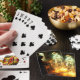 Essas cartas de jogar têm uma garota e um fantasma pintado nelas.