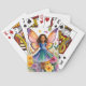 Jogando cartas com uma jovem fada de menina com asas vibrantes de borboletas cercadas por flores coloridas, exuando um senso de magia e capricho. Seu vestido espelha as matizes das asas, combinando as borboletas brilhantes fluindo ao seu redor.