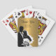 O ouro clássico e o casamento preto favorecem as cartas de jogo de hóspedes com noiva e design gráfico de noiva, fundo de cor dourada, além das quedas de noiva e monograma que você pode personalizar com sua data de casamento, noiva e nome do noivo no estilo. Projetado como favoritos de convidados de casamento com um toque de classe.