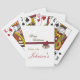 Ouro muito detalhado Texto feliz de Natal. Uma fita vermelha atravessa as cartas de jogar e tem dois sinos de ouro para um tema de Natal festivo. Adicione seu próprio texto personalizado.