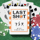 Celebre o último lance do noivo antes do casamento com este baralho de cartas temático de basquetebol listrado preto e laranja. Com uma bola de basquete e silhuetas de jogadores de basquete, é uma escolha divertida e esportiva para uma noite de rap ou fim de semana de despedida de solteiro. Personalize com o nome do noivo e detalhes do evento para um presente personalizado!