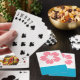 Jogando cartas com um design com a bandeira de Salem, Oregon. Uma bandeira branca e azul com uma flor de cereja rosa