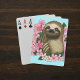 Uma preguiça bonita sentada entre flores cor-de-rosa contra um pano de fundo azul